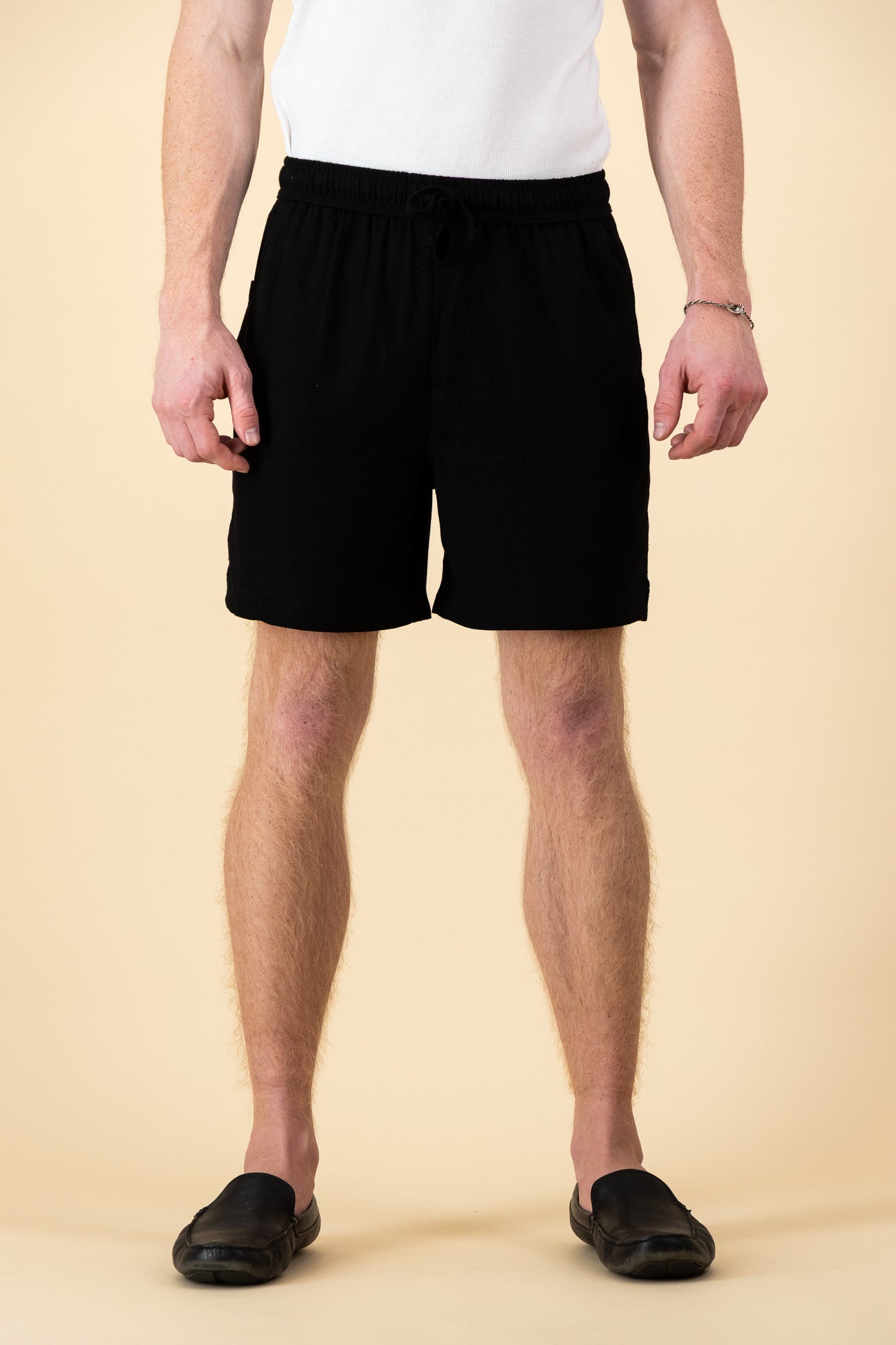 Introducing our casual black linen viscose shorts, a great blend of style and comfort.