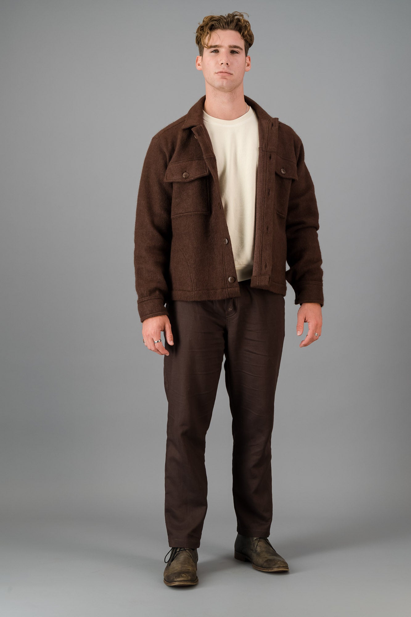Featuring a button-front closure, classic collar, and multiple functional pockets, our Chocolate Knitted Melton Jeans Jacket combines practicality with timeless style. The tailored fit enhances your silhouette, ensuring a flattering appearance that suits various body types. Whether layered over a shirt, t-shirt or sweater, this jacket adds a sophisticated edge to any ensemble.