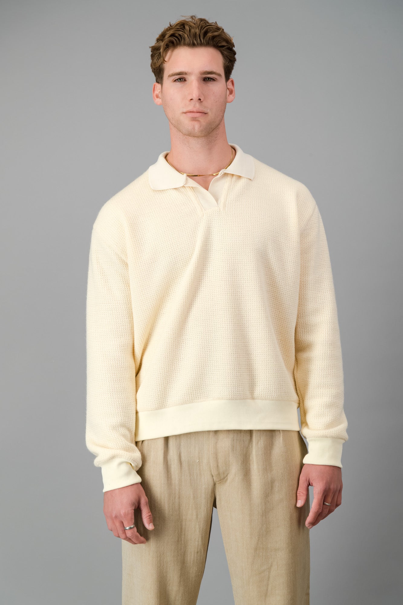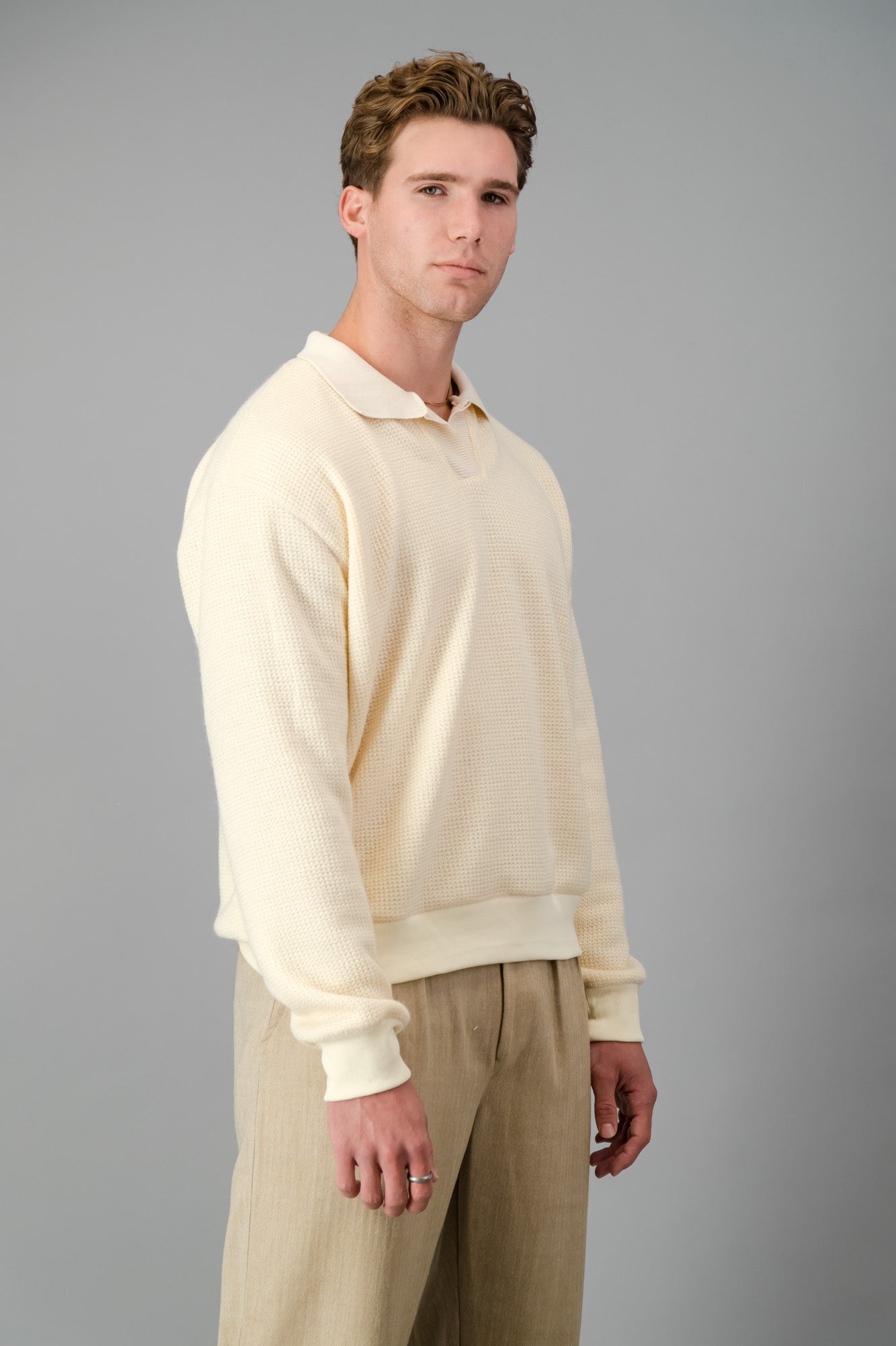 Polo Jersey Knit Acrylic Cream LS