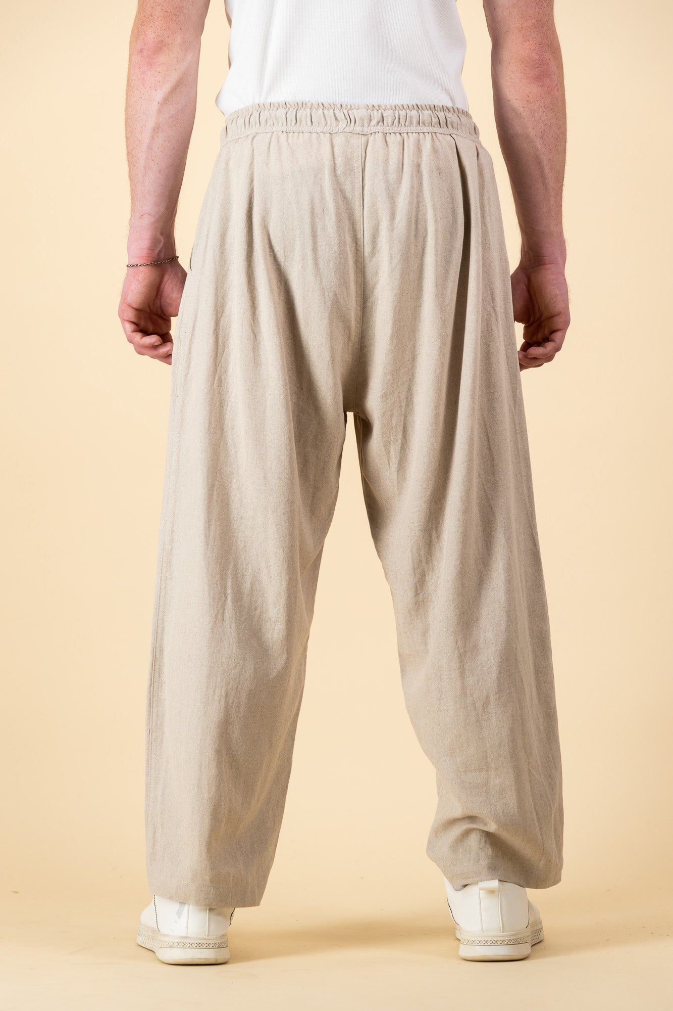 Lightweight and breathable, these oatmeal barrel leg pants blend the natural texture of linen with the softness of viscose. Designed for all-day comfort, they feature an elasticated waistband with drawstring and a concealed phone pocket. A modern take on a refined, relaxed staple for everyday wear.