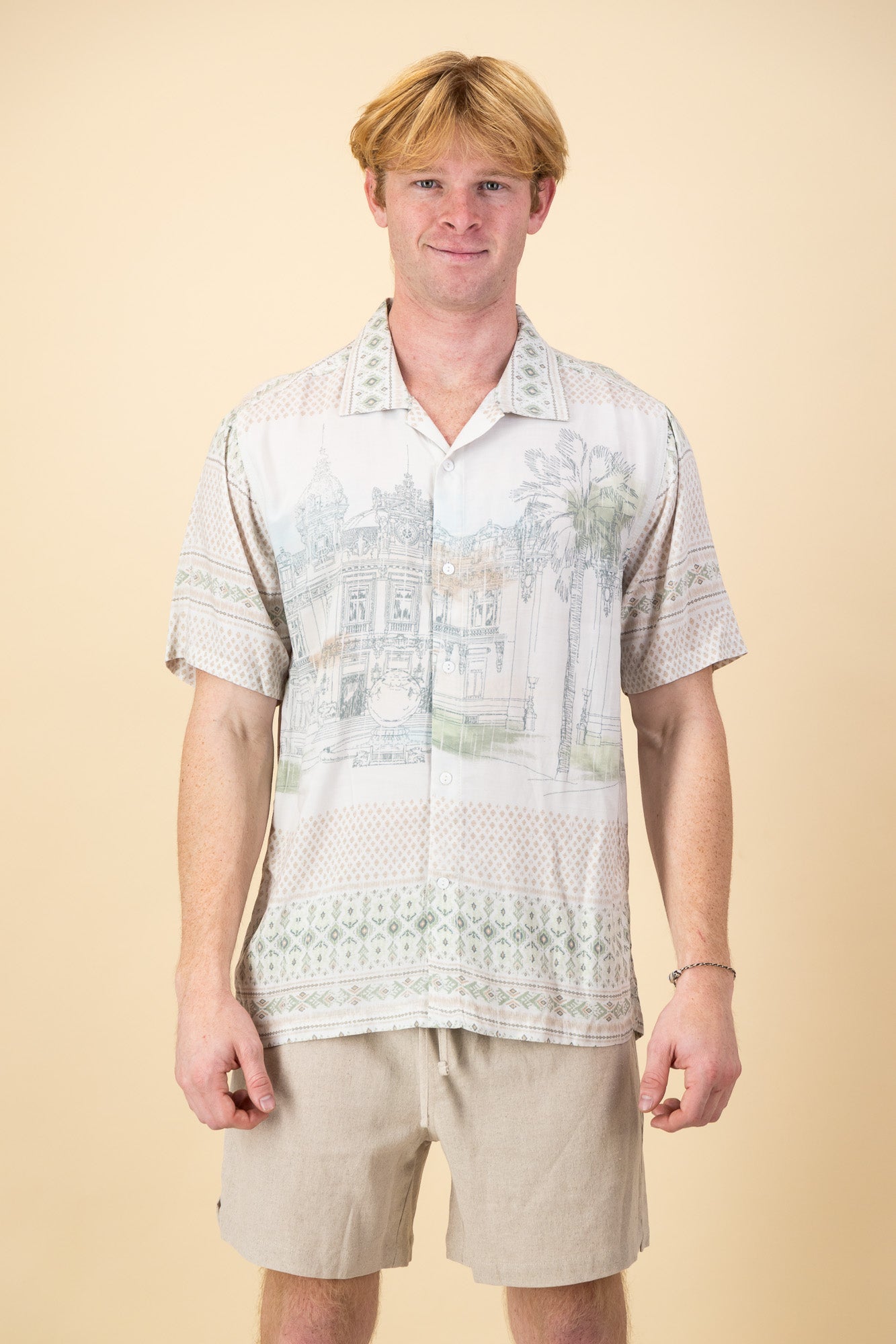 Introducing our Viscose short-sleeve shirt. This shirt is made from a light-weight viscose making it breathable and comfortable to wear in summer.