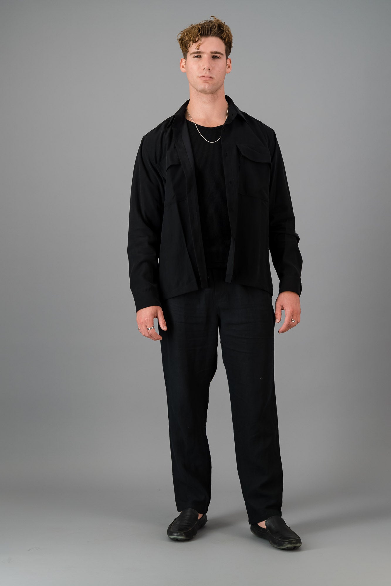 Crafted from high-quality Tencel, this overshirt offers a smooth, breathable feel that’s gentle on the skin. Known for its sustainability and durability, Tencel fabric ensures that you not only look good but also make an eco-friendly choice. The rich black hue adds an air of sophistication and style, making it easy to pair with a variety of outfits.