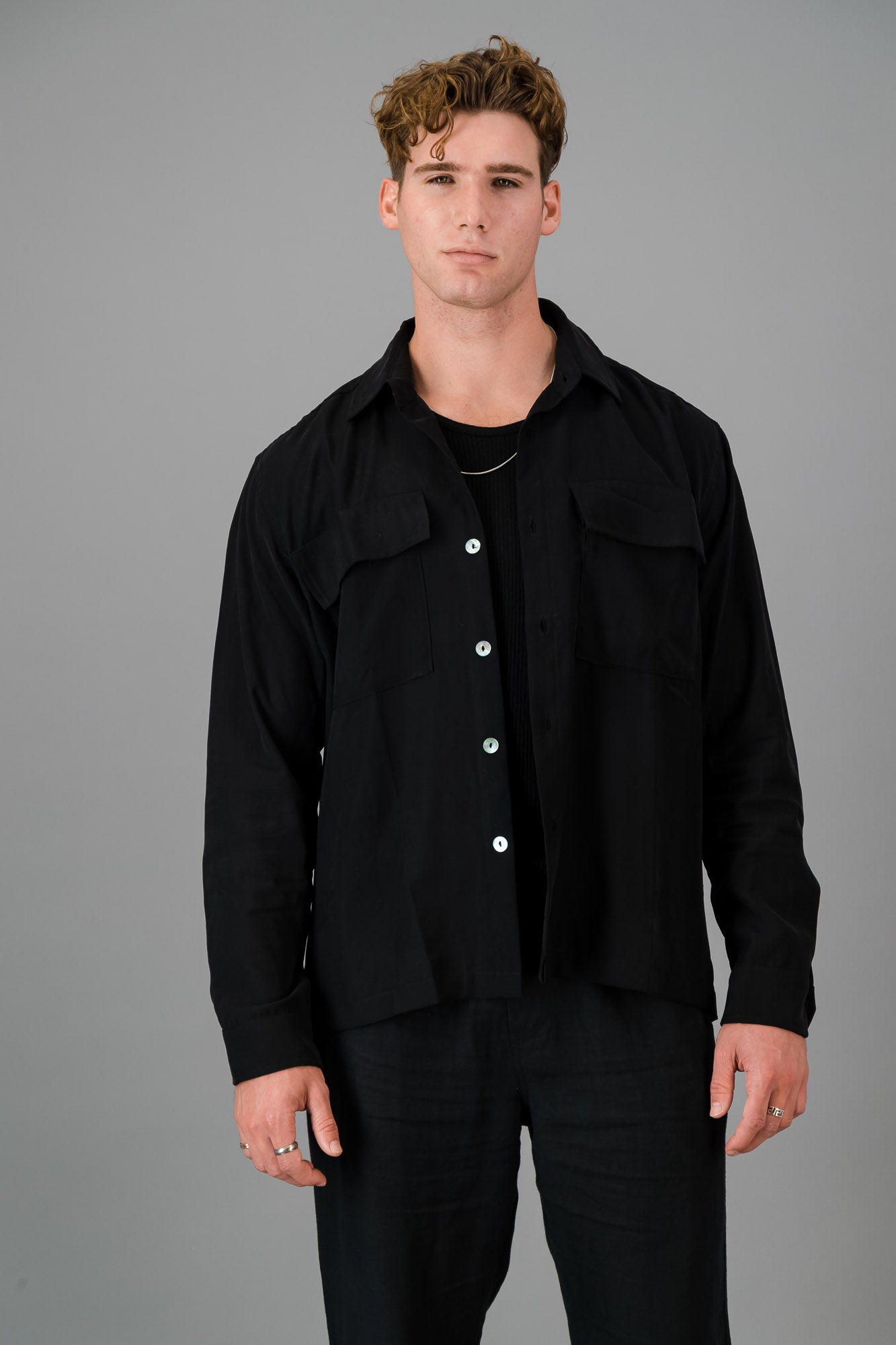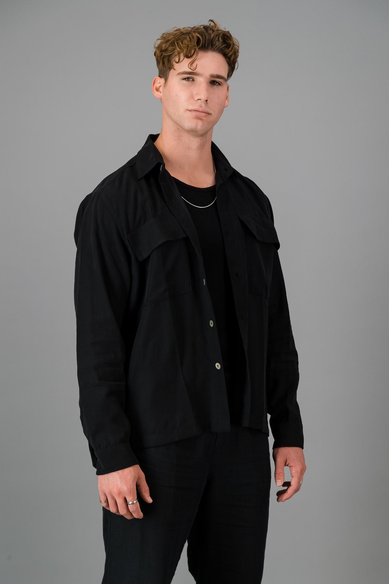 Elevate your everyday style with our Black Tencel Overshirt - an effortlessly chic piece that combines comfort, functionality, and timeless fashion. This overshirt is designed to be a versatile addition to your wardrobe, perfect for layering or wearing on its own.