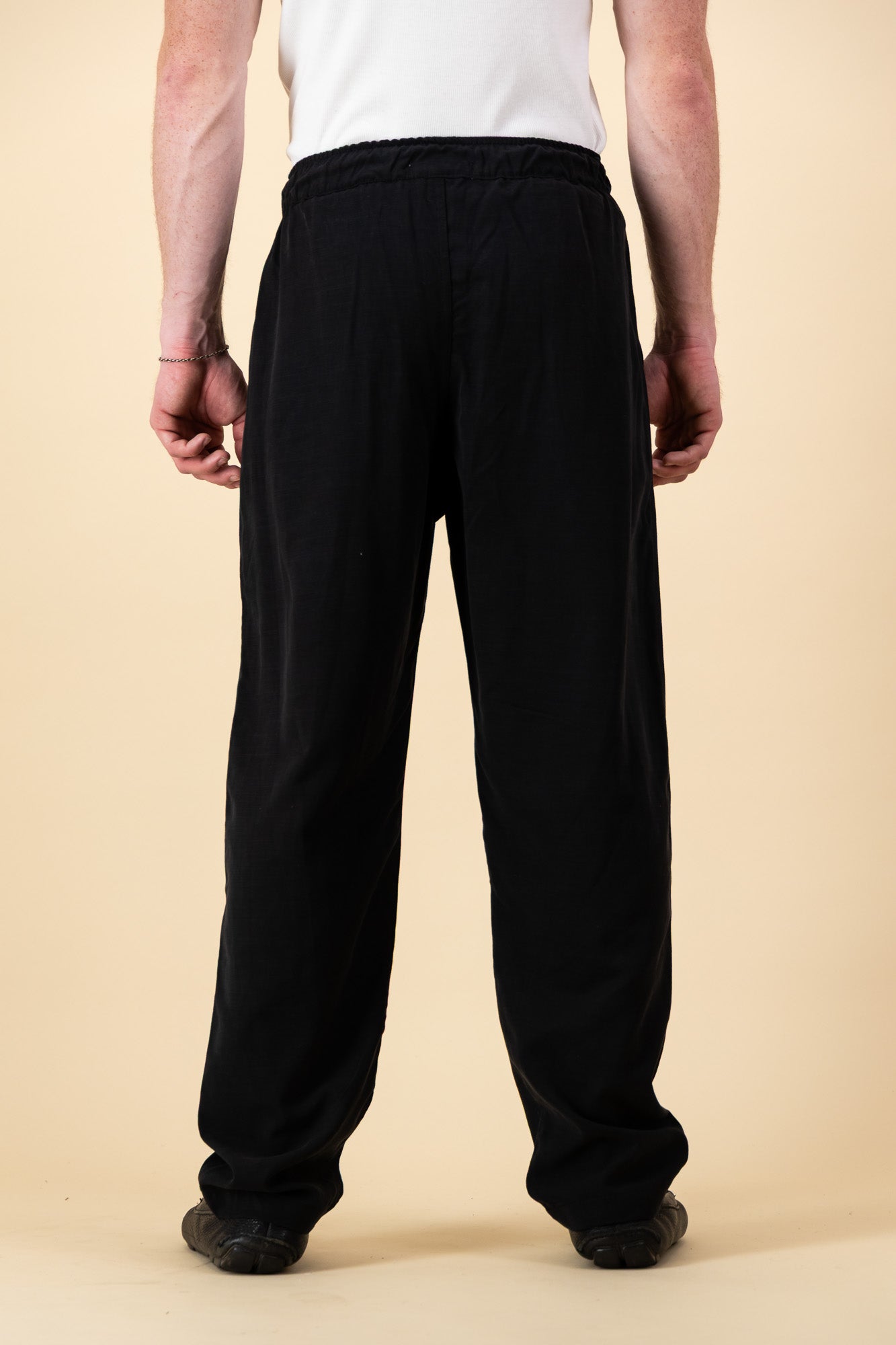 These pants are the perfect combination of our classic, pleated vintage pants and our comfort linen-blend pants. Featuring front pleats and a flat front waistband with button and zip closure, paired with an elasticated back for comfort and versatility. Designed with a wide leg, side slant pockets, and a phone pocket, they blend classic style with modern practicality.