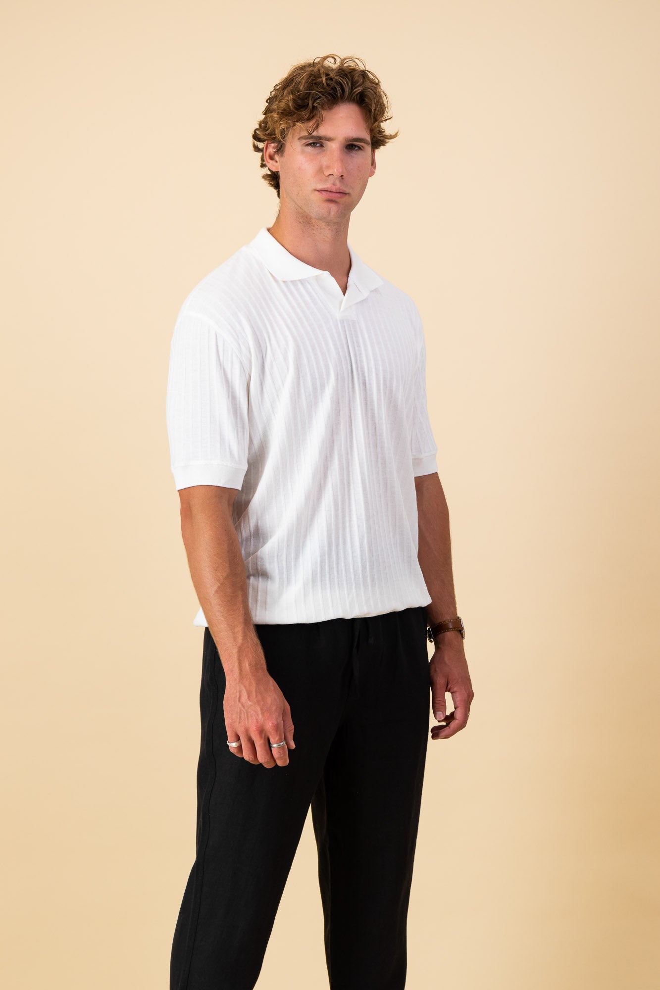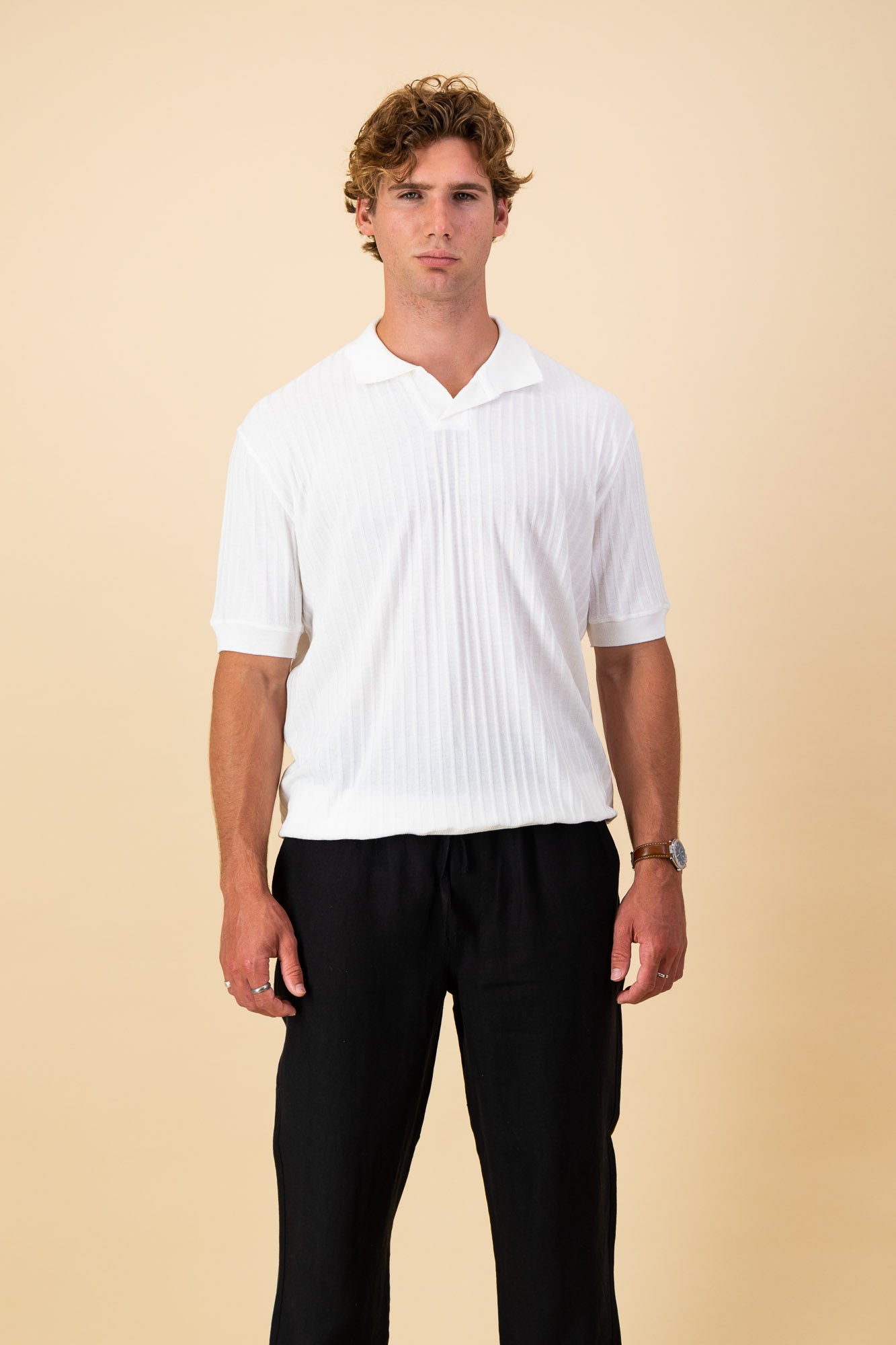 Introducing our polyester wide-rib white polo. This fabric has a soft handle due to it being slightly brushed on the inside which makes it perfect for everyday wear.
